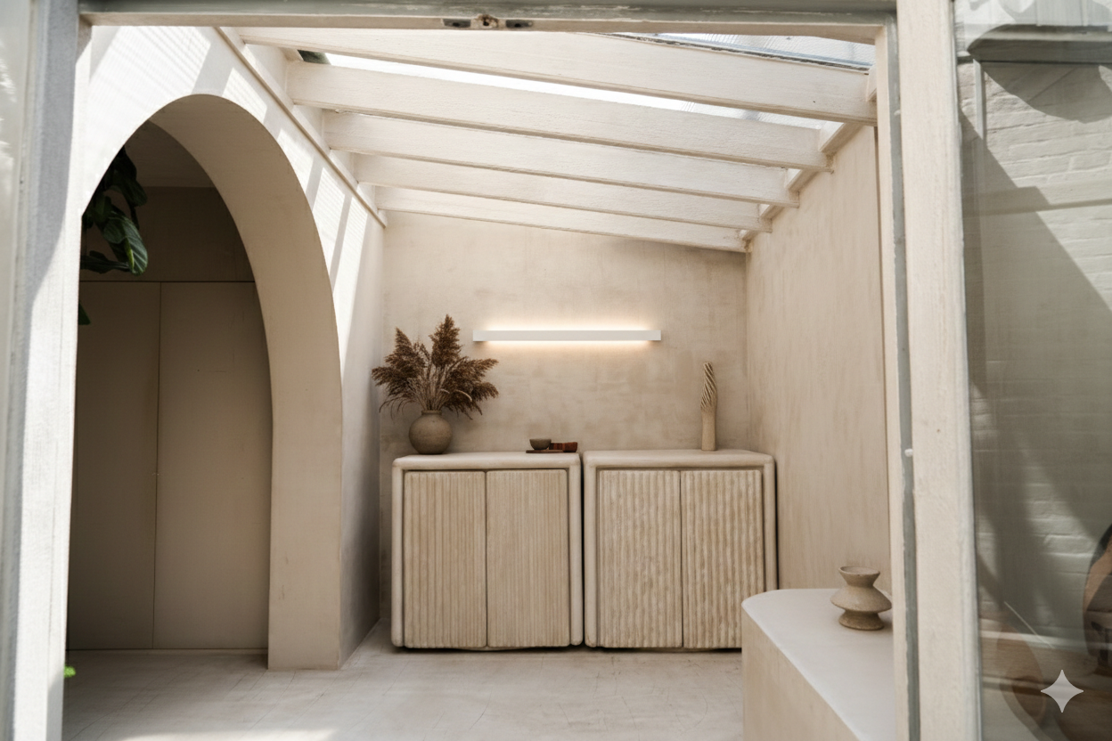 More than a surface, it is the foundation of our design language. Unlike standard microcement, our exclusive "exotic microcement" incorporates natural materials like wood chips, shells, brass and quartz, offering rich textures and personalized designs.